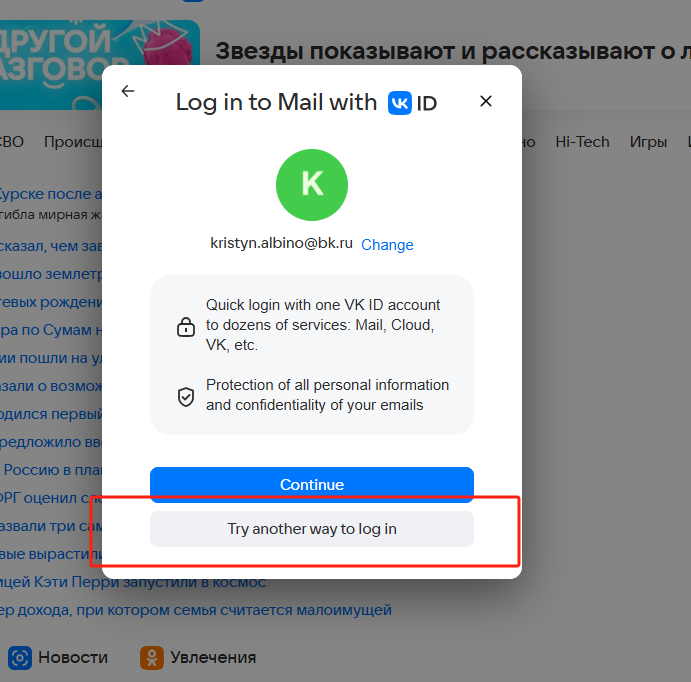 2、输入邮箱后点击尝试另一种登录方式